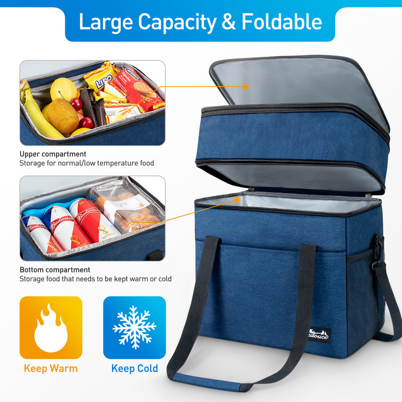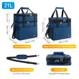 - 【Conception à double couche extensible】- Sac de repas est une structure à double couche et la couche inférieure a une capacité de 15 L, qui peut être utilisée pour stocker des aliments froids et chauds. La couche supérieure pliante de type fermeture à glissière peut augmenter la capacité de 6L, ce qui permet de stocker des aliments ou des nécessités quotidiennes à température ambiante. Le 21L sac isotherme peut contenir toutes les bières, collations, fruits, boîtes à lunch.